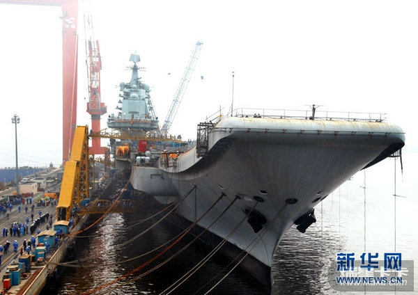 资料图:航母改装现场。