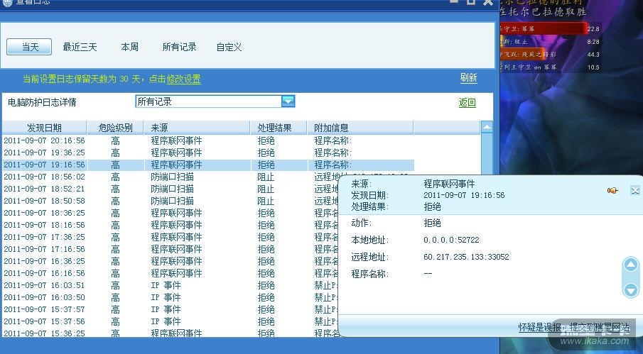 现在全盘扫描都没有了,只有那个网络访问规则老触发拒绝提示。貌似我qq密码 老被人知道~~~无奈我都不用q了 ,估计就是CF客户端的事