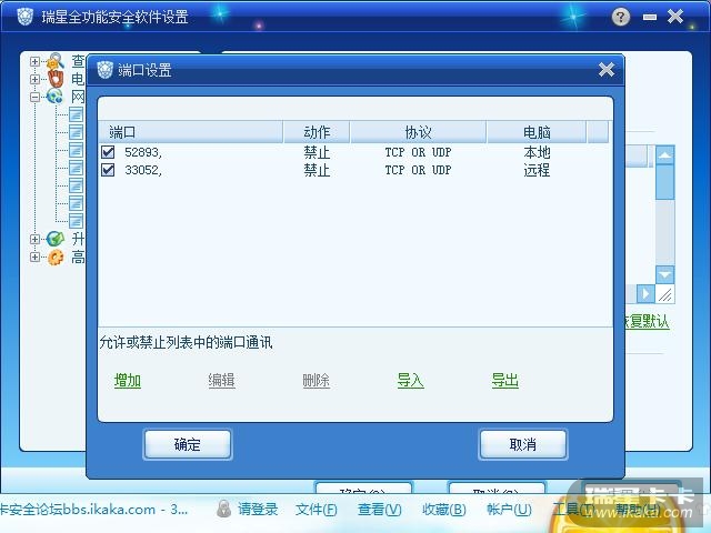 在 多功能瑞星 》设置》网络防护》程序联网控制