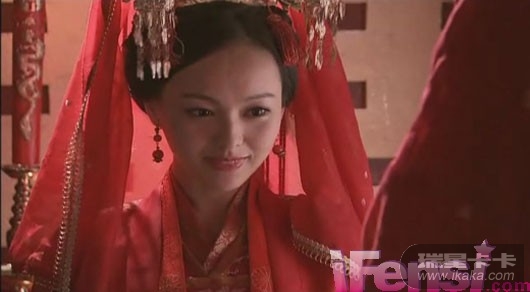 《铁血长平》里郭静的新娘装扮相猛一看倒像赵雅芝, 衣裳倒也没有大毛病,只是当新娘是正式成人的第一步,还像小姑娘一样披发而不是挽端庄的发髻,这个新娘看来还非常眷恋在娘家的时光。