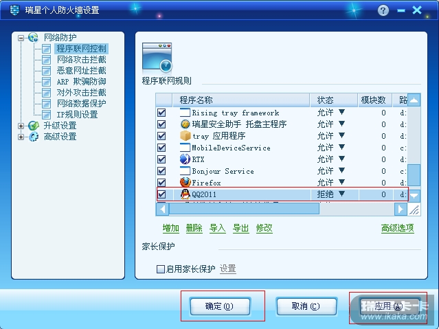 我有一个网站服务器,默认端口号是80 。我现在在服务器上安装了瑞星防火墙。我想设置一条策略。就是不管是外网还是内网只允许访问网站,别的都禁止。请问这个策略应该怎么设置?先谢谢了。我是瑞星防火墙11版的。