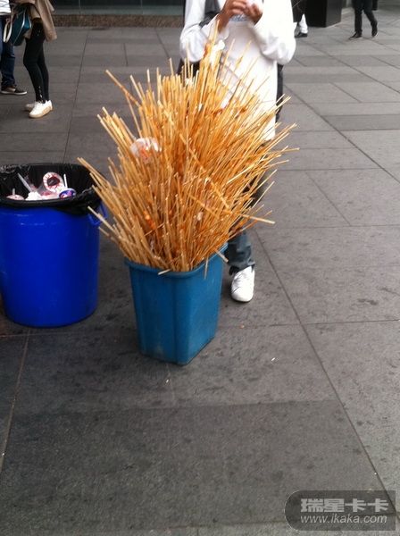 烤肉串店旁的垃圾桶,真有创意呢