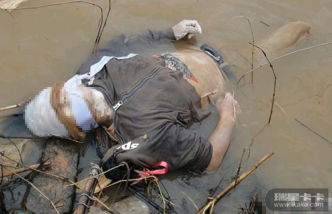 图为一具被打捞上岸的遗体,头部被胶带缠裹。