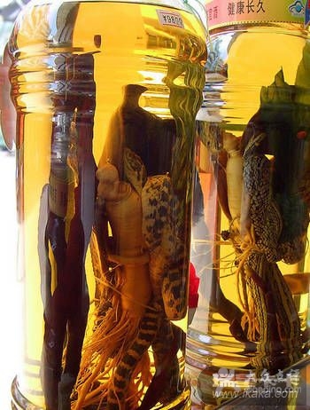 外国人能喝到蜥蜴酒刚刚是数十年的工夫,而且这种酒是一直被视为进口奢侈品的。这种绿色的喝起来有点像白兰地的酒是将蜥蜴、壁虎和人参一起泡在米酒桶里制成的。喝这种酒,据说可以避邪、明目。