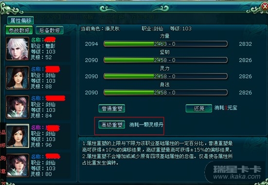 、只针对角色的基础属性(力量、坚韧、灵力、身法)进行重塑;2