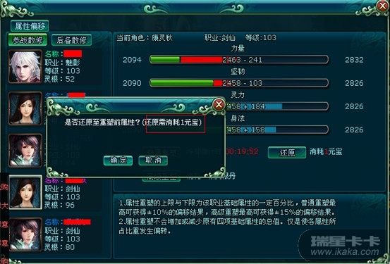 、还原功能可还原不满意的属性到重塑前的属性,还原需要消耗1