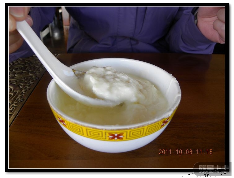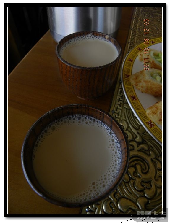 天气冷,奶茶是放在那种保暖壶里滴,倒在木头的杯子里,一会上面就会结一层奶皮~