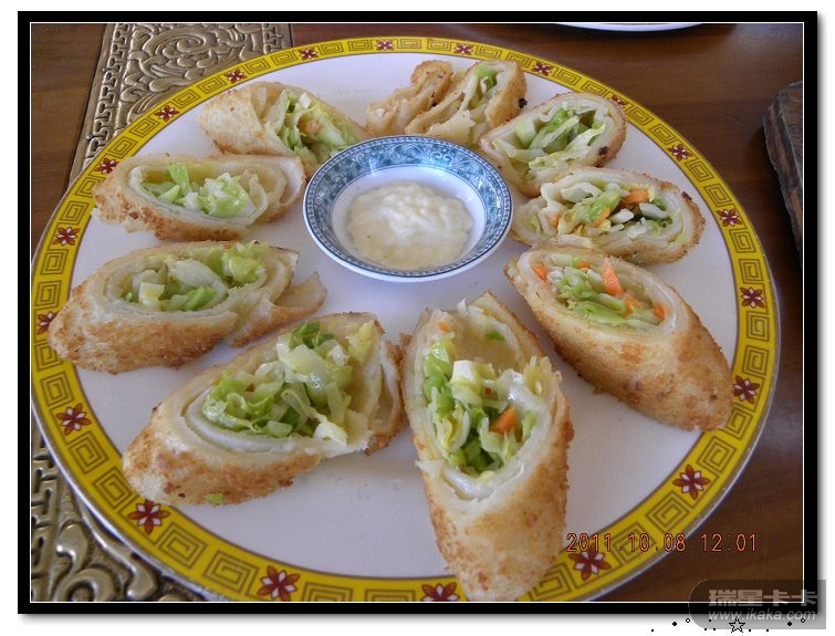 什锦蔬菜卷,好吃呀好吃,还是只会说好吃,外面那层好像,似乎是那个青稞面做滴,恩,再说一次好吃~
