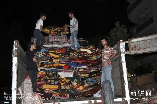 2011年10月23日 土耳其东部地震已造成85人死亡 10月23日,在土耳其东部阿德亚曼省,工作人员收集毛毯作为御寒救灾物资送往地震灾区。