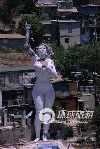 1987年,一名墨西哥艺术家决定以其女友的裸 体为模型,用18吨钢筋混凝土塑造一尊雕像。他计划将这座五层楼高的雕塑建成空心质地,这样他能住在里面。1990年雕像完工,它的头部被建成一间办公室,胸部是卧室,臀部则是卫生间。
