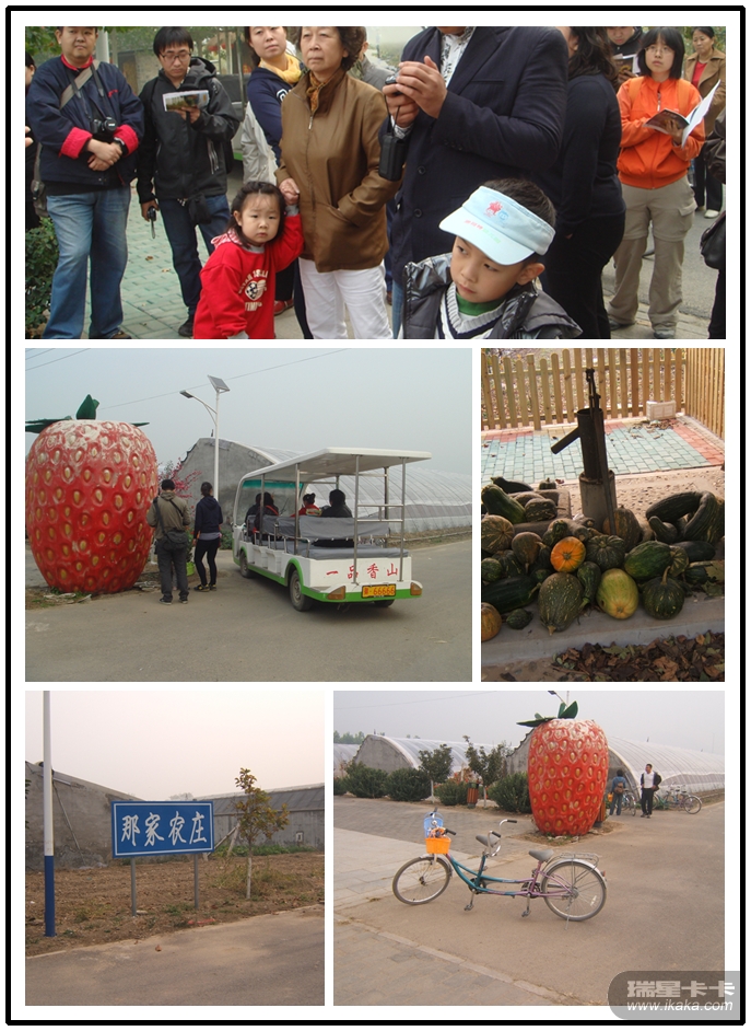 采摘的园子好大啊~~~不爱走着怎么办?没问题,你可以乘坐免费的电瓶车,倏的一下就到啦~也可以用自己的证件免费租借双人自行车,实践证明自己骑也没问题的,这样你就可以自己想去哪里就去哪里啦~路痴不太推荐,不过应该不至于迷路,可能就是找不到想采的东东在哪,不过每个路口都差不多有路牌指示啦!