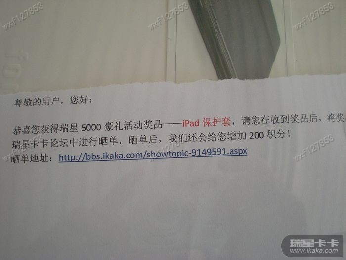 4、从2013-2-27日起,不同类奖品每个晒单帖只加200分,如多次获得的奖品想获得多次积分,请分开发帖;相同奖品同时晒单时只需在一张照片中展示,不需分开发帖。