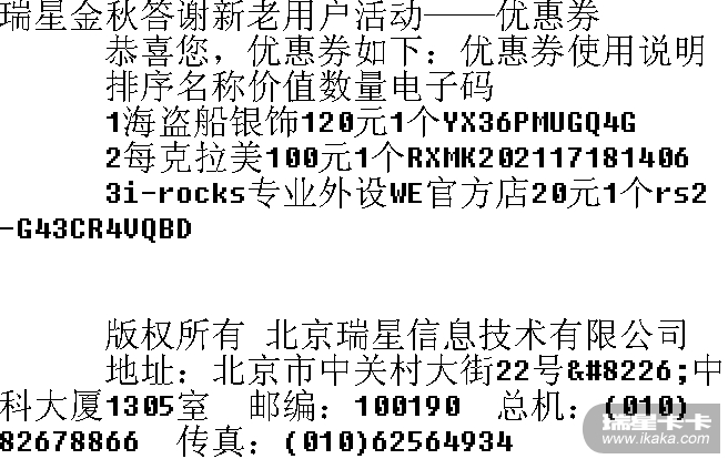瑞星金秋答谢新老用户活动——优惠券