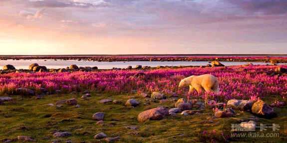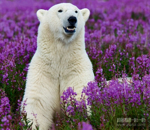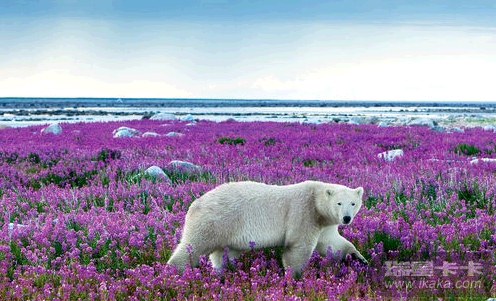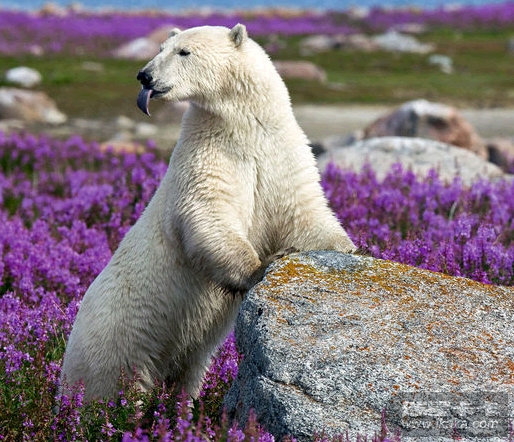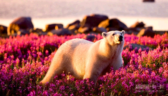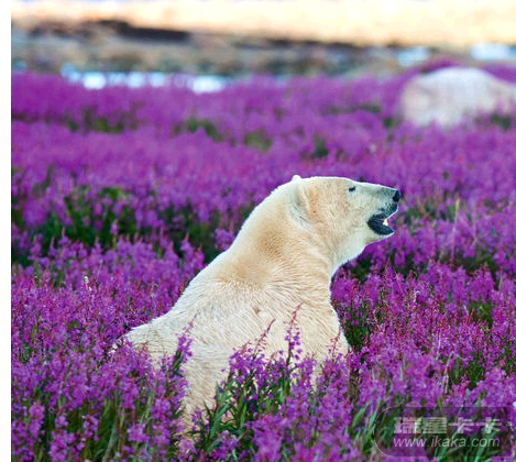北极熊四处张望,很是疑惑,感觉像是走错了地方一样。这图片确实很震撼,本来应该身处雪地的北极熊竟然被鲜花包围着,处在这样的环境下,这只北极熊感到困惑也很正常