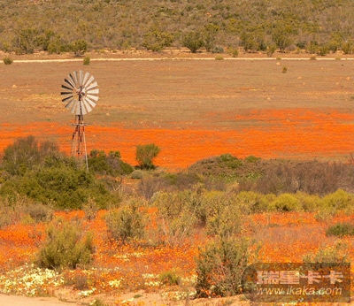 纳马夸兰。南非纳马夸兰在非洲南部的最北角。位于橙河和布满鲜花的大海岸之间,那里被认为是世界的一个自然奇迹。但是这里大部分的时间是干燥和荒芜的,直到八月和九月的雨季来临时。这里的野花变幻不同的色彩,正是这种独特的美吸引这来自世界各地的游客。