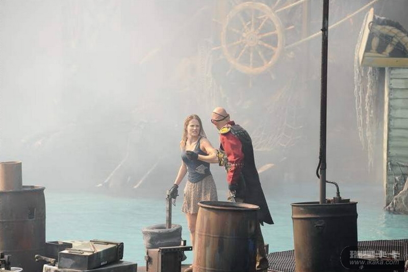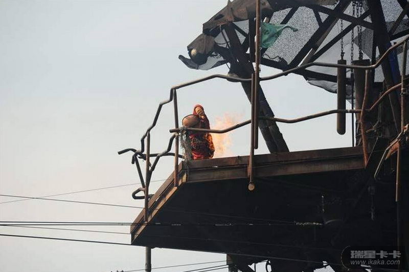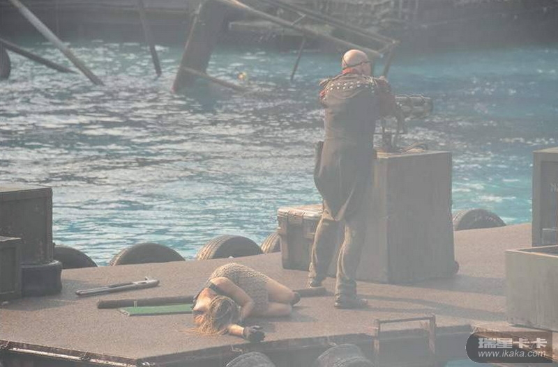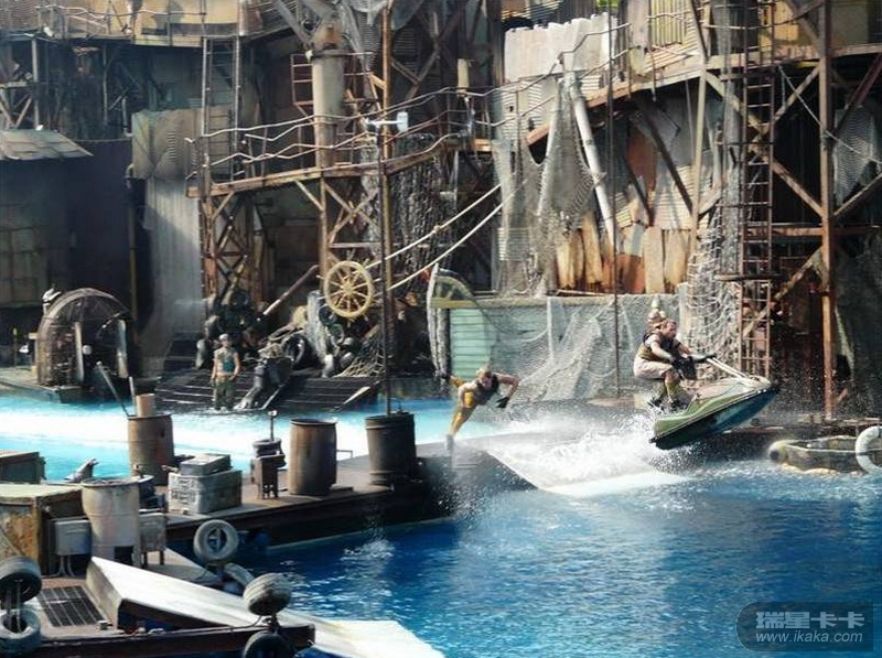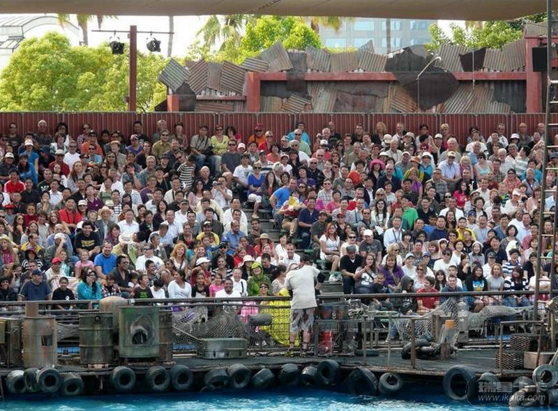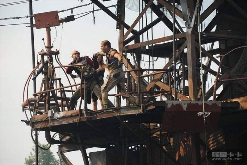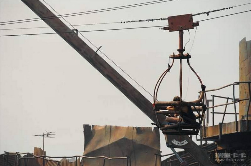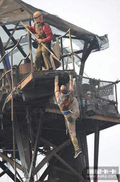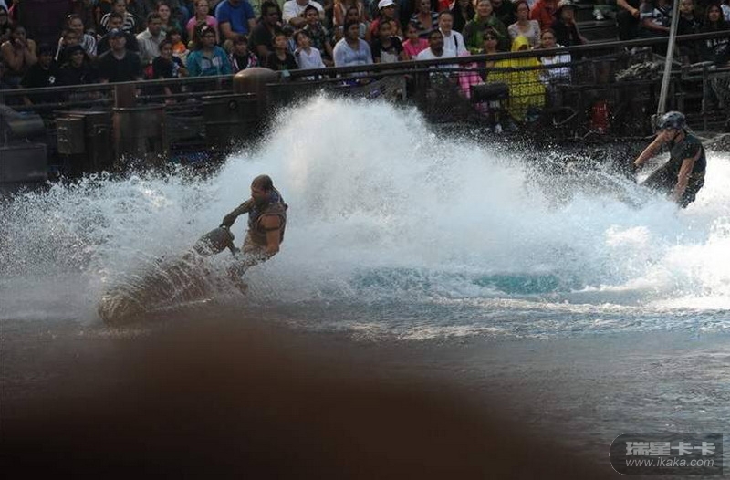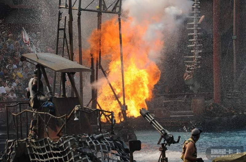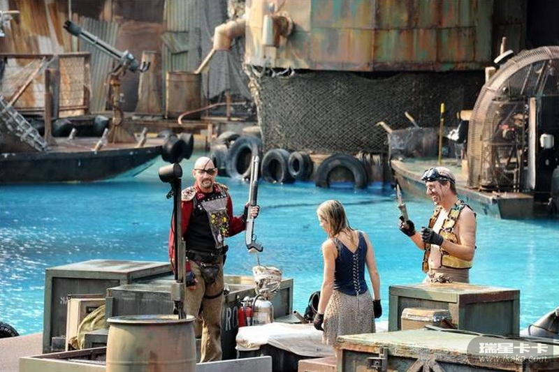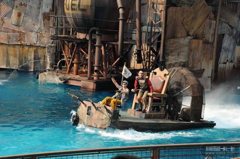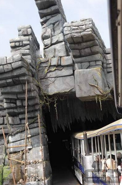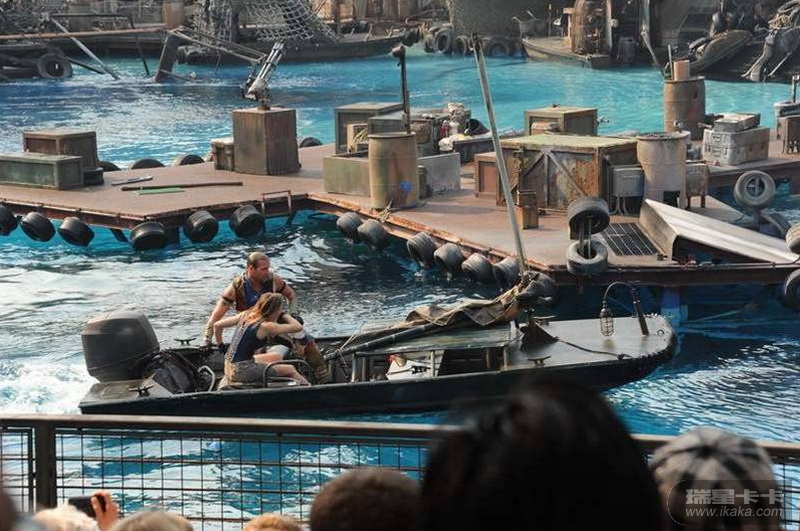 排队等候可以产生左右摇晃和上下颠簸效果的电瓶车观看影视拍摄效果。