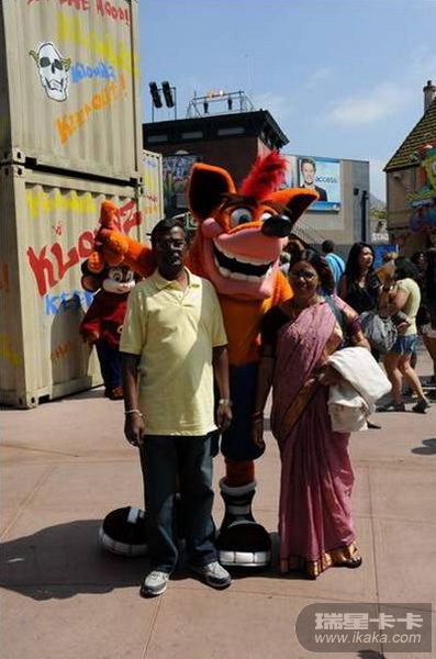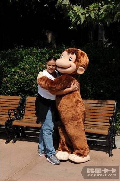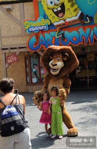 孩子们高兴地与卡通动物合影