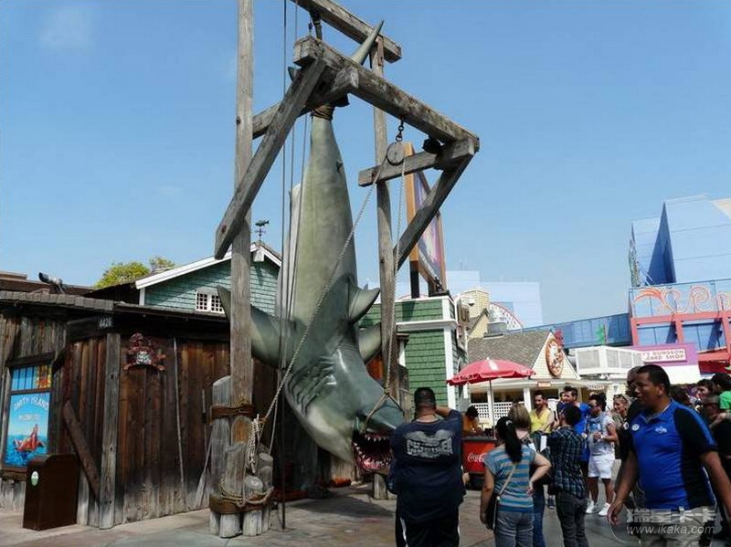 逼真的大鲨鱼被吊起