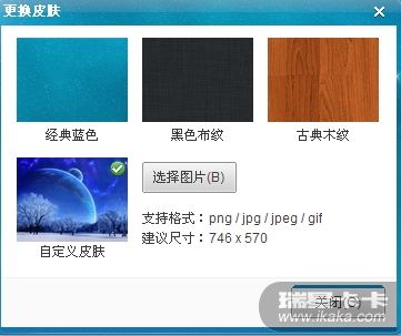 在自定义换肤的基础上再另外加几款可选皮肤(就是瑞星人员设计的皮肤)就像瑞星2012的换肤一样,如图: