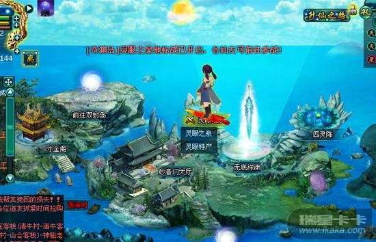 在开战之前玩家会看到地标战所在地的提醒广播,到达地标战所在地的灵眼之泉处即可报名参加。
