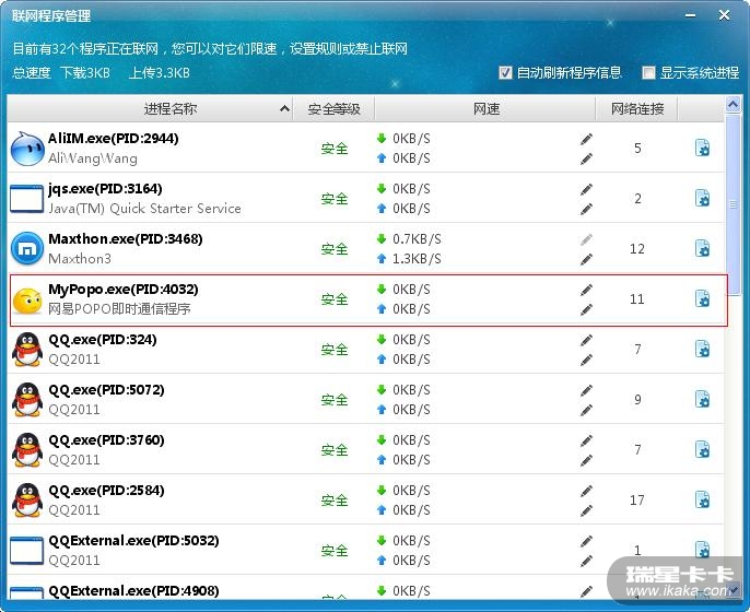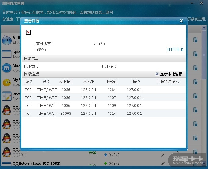 在联网程序界面,查看到网易泡泡的连接数为12,但点击进去,发现实际显示的连接数只有4。