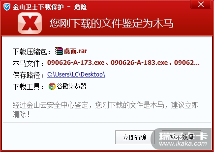 从网上下载的病毒包,金山卫士能够检测出下载的是病毒,而瑞星防火墙虽然拥有“拦截恶意下载”的功能,但却没有发挥作用,应当充分利用云安全平台,加强这块儿的功能。