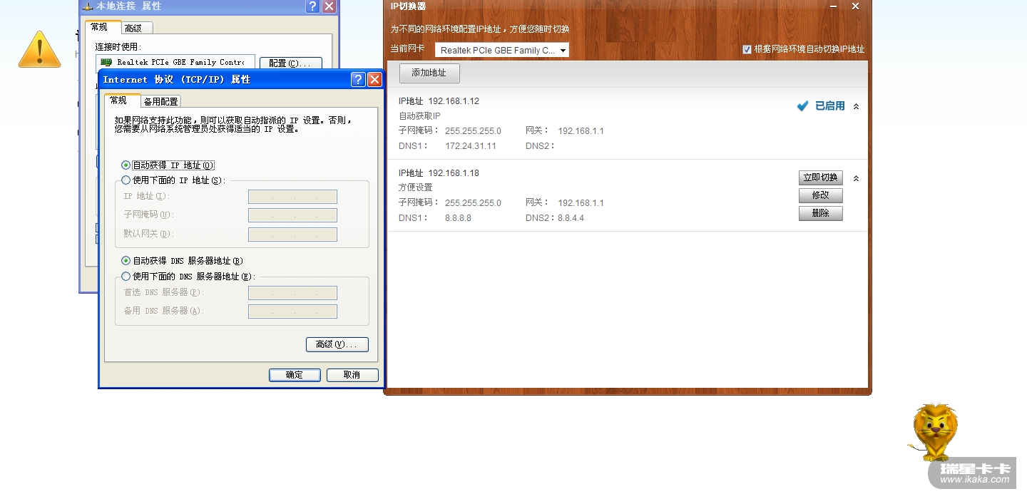 IP切换器如果从手动设置IP切换到自动获取IP,就是把IP置为自动获取,有网络分配IP。所以不是问题。