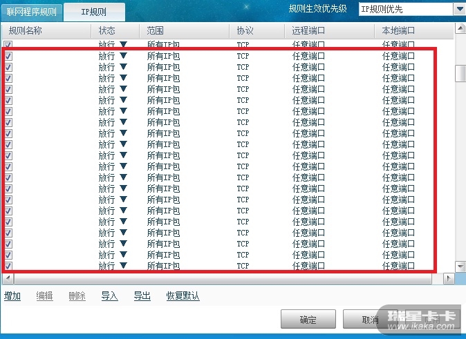 不断增加IP规则,每增加一次多消耗4-12K内存,并且不会被释放,最后点击恢复默认也不会被释放。