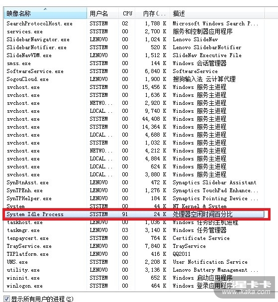 空闲进程是一个正常的程序 它那个91是说现在有91个空闲CUP用量 不是占用了91个CPU空间
