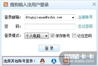 在使用搜狗输入法登陆账号的时候,发现了和其他知名网站的一些合作。希望瑞星也能加入到这里阵营中。(如图)