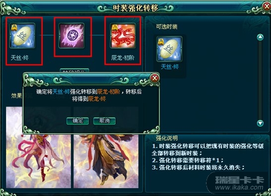点击进入强化界面之后,即可进行时装的强化转移操作: