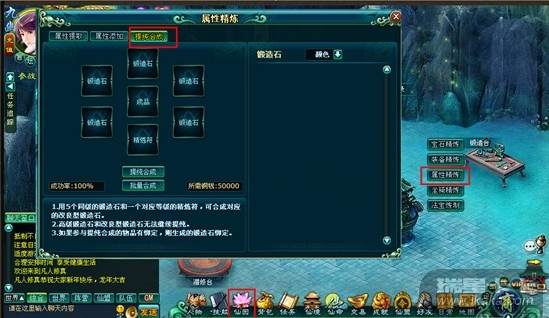 、锻造石合成玩家在仙园——洞府——锻造台——属性精炼——提纯合成处可以进行锻造石的合成;