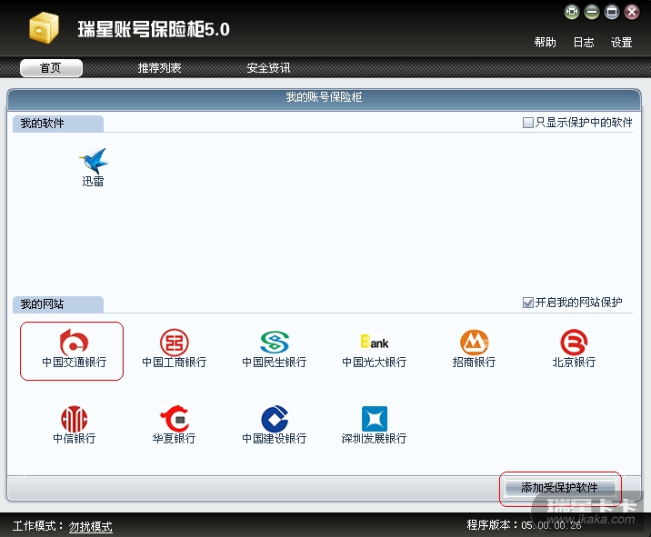瑞星帐号保险箱的网银保护怎么添加中国银行和交通银行呀!在您所列出来的里面好多都没有。