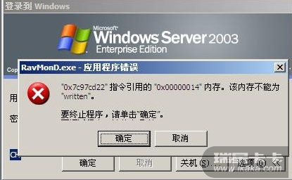 9:12:23 弹出应用程序: RavMonD.exe - 应用程序错误: "0x7c97cd22" 指令引用的 "0x00000014" 内存。该内存不能为 "written"。
