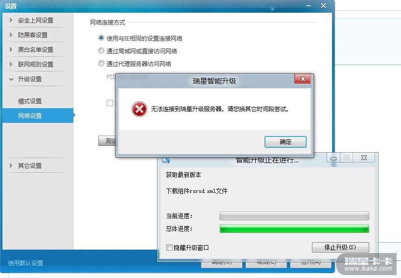 问题是这样:升级总是提示连接不到服务器,请换个时间再试。