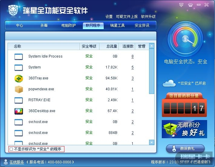 在2011版中联网程序模块已经可以达到您的要求,而且系统进程默认是不列出的。