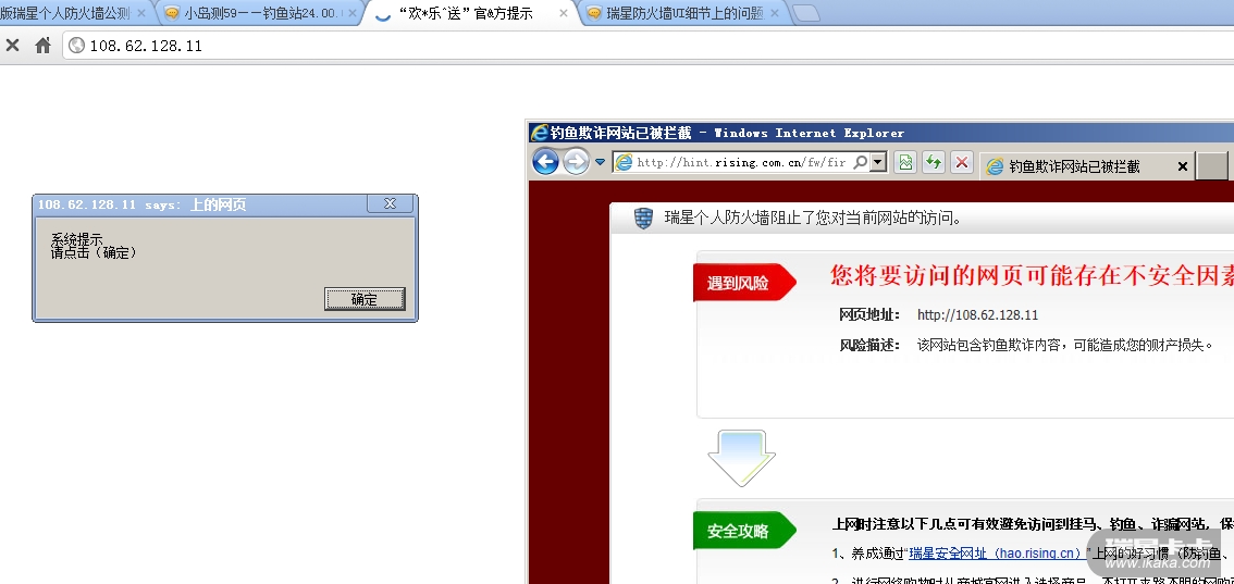 http://108.62.128.11/清理了谷歌浏览器的缓存,使用谷歌浏览器访问没有拦截,使用IE9访问可以拦截。这是问题一。问题二是详细设置中,我未勾选IE9,只勾选了谷歌浏览器。按理来说,IE9不该拦截啊!!