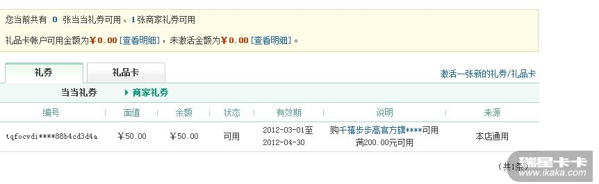 昨天换的,一张指定了一个店,还说是礼券仅能购买入驻的商家商品,不能用于当当自营商品,激活两张一张是