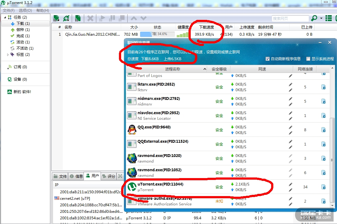 通过上交IPv6的ISATAP隧道,上六维PT(只能IPv6登录),用utorrent3.1.2下载