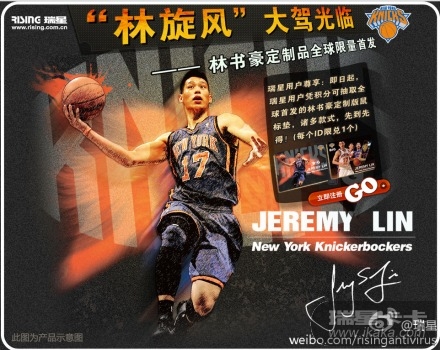 3月22日,瑞星正式启动2012年NBA计划第一步,凡参加瑞星5000万活动用户可凭积分抽取NBA官方正式授权产品——林书豪超大鼠标垫(两款),本产品为NBA正版授权产品,瑞星全球首发,限量1000个,先到先得,大家赶快抢去吧!活动地址: http://www.rising.com.cn/2012/NBA/