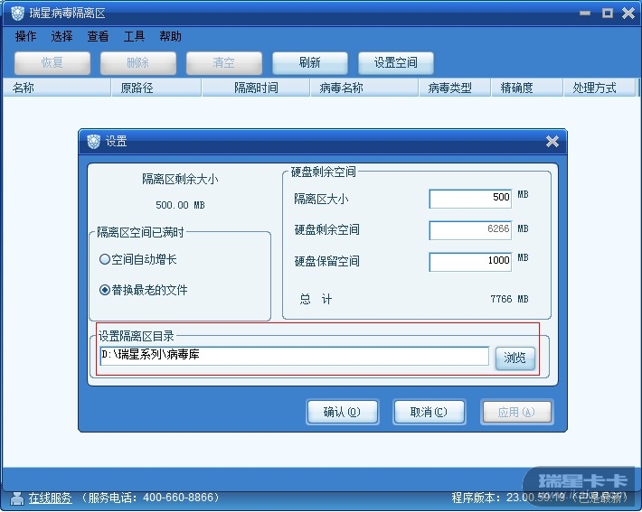 说明:建议增加“隔离区”设置并且把它和瑞星杀毒关联起来