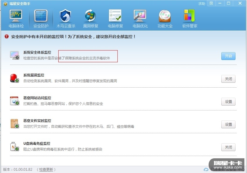 在试用瑞星安全助手的时候,想到了一个不是很成熟的想法,在机器中安全的是360杀毒+瑞星安全助手的套装,上面显示的是什么?它是否能检测到360杀毒软件。