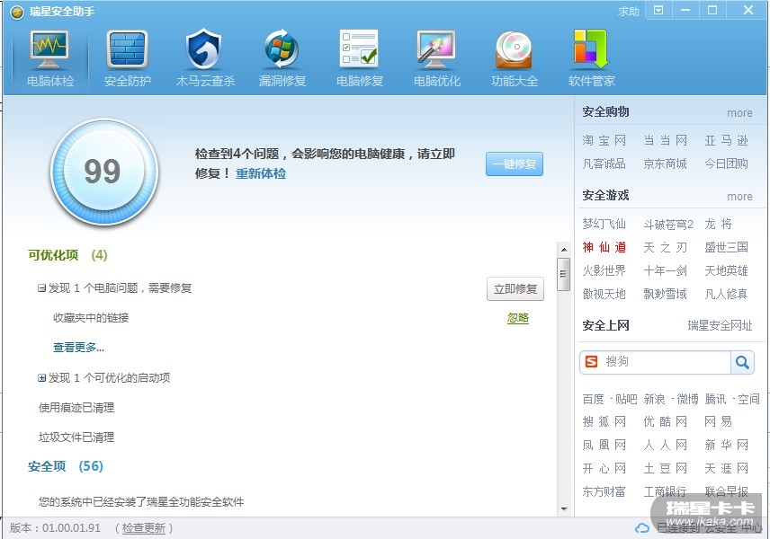 问题已解决,请将瑞星安全助手升级至最新版本                                        。