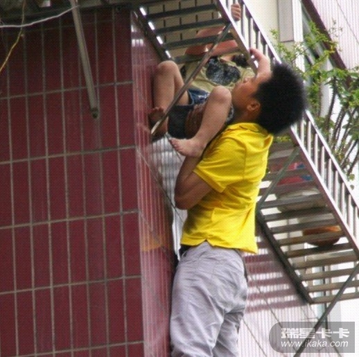 没有任何防护措施,双脚并立站在女孩儿正下方。一手握住防盗窗,一手将女孩儿往上托。周冲说刚走下来的时候,脚都是软的。但并不是因为害怕,要是害怕也不会冲上去了: