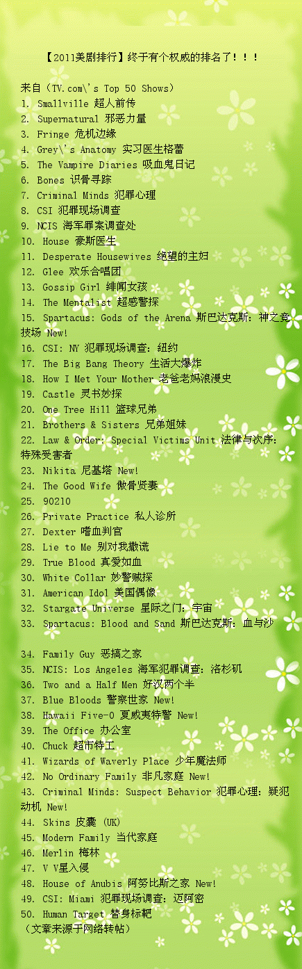 美剧排行,权威的排名!50部抓紧时间消灭掉!!!