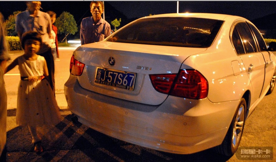 6月16日晚19时41分宝马轿车依旧被村民们围在事故现场。