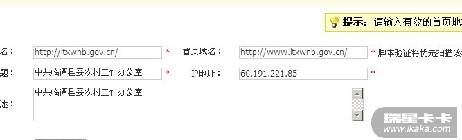 http://www.ltxwnb.gov.cn/标题:中共临潭县委农村工作办公室 IP地址:(我填的是域名解析的IP地址)