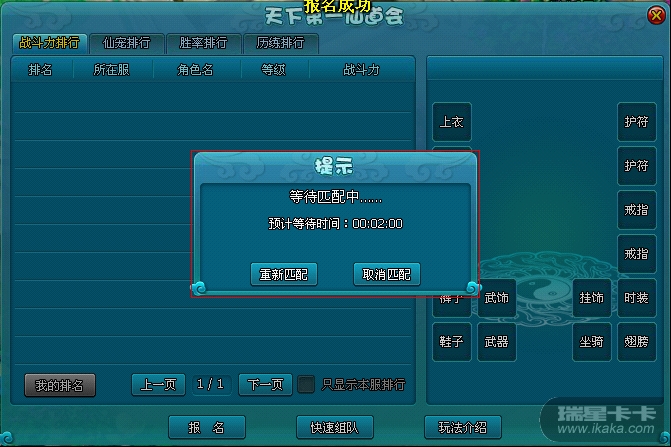 4.点击邀请,对方接受后再仙道会主界面点击立即报名,则会根据队伍的战斗力进行匹配(推荐和战斗力相近的玩家组队,否则会匹配到较为强大的对手),如下图: