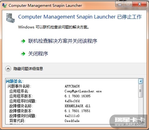 昨晚给手机装USB驱动,提示是按住音量+键插USB线,结果插上之后提示发现新硬件,结果我按住+键的手松了,然后就没安装成功。结果现在一打开硬件管理器就提示“Computer Management Snapin Launcher已停止工作”的错误,如图所示,求高手解答。不胜感激。