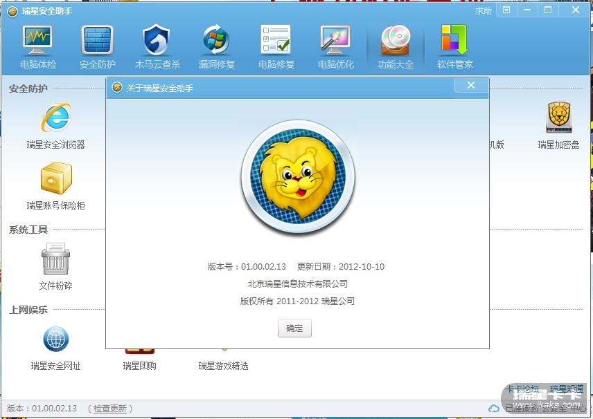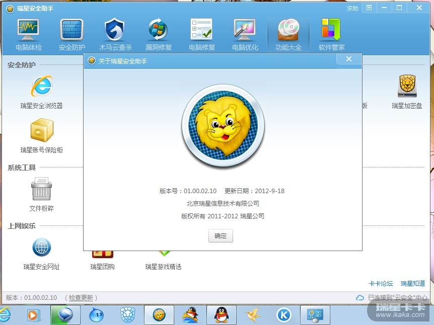 在试用瑞星安全助手的时候,发现了一个BUG.(如图所示)